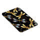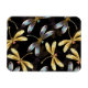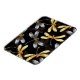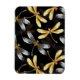 Seamless pattern with gold, jewellery, shiny dragonflies with detailed, sparkling wings on black background. Gold dragonfly.