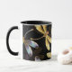 Seamless pattern with gold, jewellery, shiny dragonflies with detailed, sparkling wings on black background. Gold dragonfly.