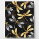 Seamless Pattern with Golden Dragonflies Plaque