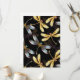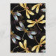 Seamless pattern with gold, jewellery, shiny dragonflies with detailed, sparkling wings on black background. Gold dragonfly.