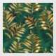 Seamless pattern of gold, jewelry, shiny fern branches and leaves on green, woodland, textured background. Golden fern.