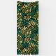 Seamless pattern of gold, jewellery, shiny fern branches and leaves on green, woodland, textured background. Golden fern.