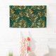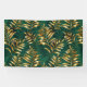 Seamless pattern of gold, jewellery, shiny fern branches and leaves on green, woodland, textured background. Golden fern.