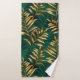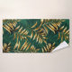 Seamless pattern of gold, jewelry, shiny fern branches and leaves on green, woodland, textured background. Golden fern.