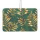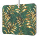 Seamless pattern of gold, jewelry, shiny fern branches and leaves on green, woodland, textured background. Golden fern.