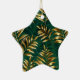 Seamless pattern of gold, jewelry, shiny fern branches and leaves on green, woodland, textured background. Golden fern.