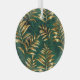 Seamless pattern of gold, jewelry, shiny fern branches and leaves on green, woodland, textured background. Golden fern.