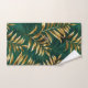 Seamless pattern of gold, jewelry, shiny fern branches and leaves on green, woodland, textured background. Golden fern.