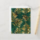 Seamless pattern of gold, jewelry, shiny fern branches and leaves on green, woodland, textured background. Golden fern.