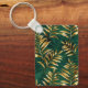 Seamless pattern of gold, jewelry, shiny fern branches and leaves on green, woodland, textured background. Golden fern.