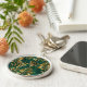 Seamless pattern of gold, jewelry, shiny fern branches and leaves on green, woodland, textured background. Golden fern.