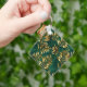 Seamless pattern of gold, jewelry, shiny fern branches and leaves on green, woodland, textured background. Golden fern.