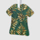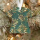 Seamless pattern of gold, jewelry, shiny fern branches and leaves on green, woodland, textured background. Golden fern.