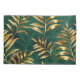 Seamless pattern of gold, jewelry, shiny fern branches and leaves on green, woodland, textured background. Golden fern.