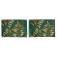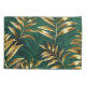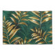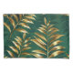 Seamless pattern of gold, jewellery, shiny fern branches and leaves on green, woodland, textured background. Golden fern.