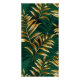 Seamless pattern of gold, jewelry, shiny fern branches and leaves on green, woodland, textured background. Golden fern.