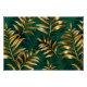 Seamless pattern of gold, jewelry, shiny fern branches and leaves on green, woodland, textured background. Golden fern.