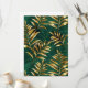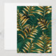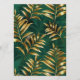 Seamless pattern of gold, jewellery, shiny fern branches and leaves on green, woodland, textured background. Golden fern.
