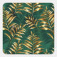 Seamless pattern of gold, jewelry, shiny fern branches and leaves on green, woodland, textured background. Golden fern.