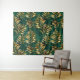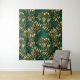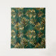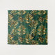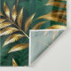 Seamless pattern of gold, jewellery, shiny fern branches and leaves on green, woodland, textured background. Golden fern.