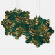 Seamless pattern of gold, jewelry, shiny fern branches and leaves on green, woodland, textured background. Golden fern.