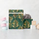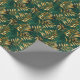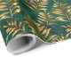 Seamless pattern of gold, jewelry, shiny fern branches and leaves on green, woodland, textured background. Golden fern.