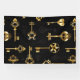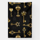Seamless pattern of antique, gold and silhouette keys on black background.