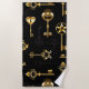 Seamless pattern of antique, gold and silhouette keys on black background.