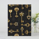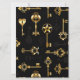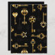 Seamless pattern of antique, gold and silhouette keys on black background.
