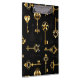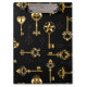 Seamless pattern of antique, gold and silhouette keys on black background.