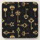 Seamless pattern of antique, gold and silhouette keys on black background.