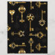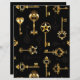 Seamless pattern of antique, gold and silhouette keys on black background.