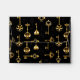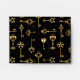 Seamless pattern of antique, gold and silhouette keys on black background.
