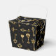 Seamless pattern of antique, gold and silhouette keys on black background.