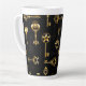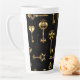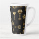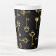 Seamless pattern of antique, gold and silhouette keys on black background.