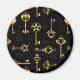 Seamless pattern of antique, gold and silhouette keys on black background.
