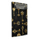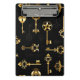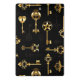 Seamless pattern of antique, gold and silhouette keys on black background.