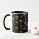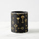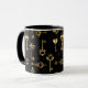 Seamless pattern of antique, gold and silhouette keys on black background.