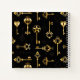 Seamless pattern of antique, gold and silhouette keys on black background.