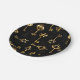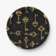 Seamless pattern of antique, gold and silhouette keys on black background.