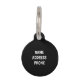 I looked through a lot of pet stores and web sites then I saw Zazzle and a tag with guitars in the background so we added his name and photo o nether front and our phone numbers on the back. It was beautiful and unique just perfect