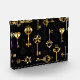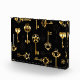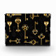 Seamless pattern of antique, gold and silhouette keys on black background.