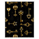 Seamless pattern of antique, gold and silhouette keys on black background.