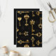 Seamless pattern of antique, gold and silhouette keys on black background.