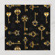 Seamless pattern of antique, gold and silhouette keys on black background.