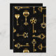 Seamless pattern of antique, gold and silhouette keys on black background.