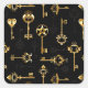 Seamless pattern of antique, gold and silhouette keys on black background.