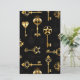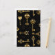 Seamless pattern of antique, gold and silhouette keys on black background.