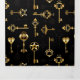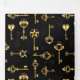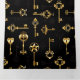 Seamless pattern of antique, gold and silhouette keys on black background.