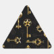 Seamless pattern of antique, gold and silhouette keys on black background.